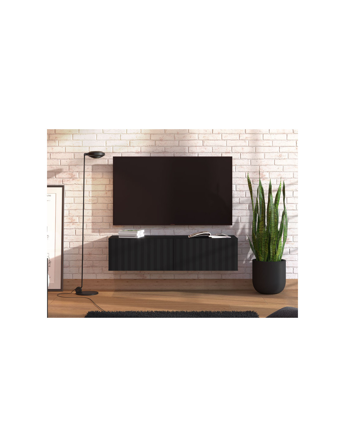 TV polica ANTIBES 128 TV 2K2V u kombinaciji crnog dekora s teksturom i crne mat folije, namijenjena je opremanju dnevnog boravka i karakterizira je suvremeni dizajn, kao i istaknuta estetska nota. Funkcionalan je komad namještaja koji će se idealno uklopiti u ambijent modernih domova. Korisni prostor sastoji se od dvije zatvorene pregrade.