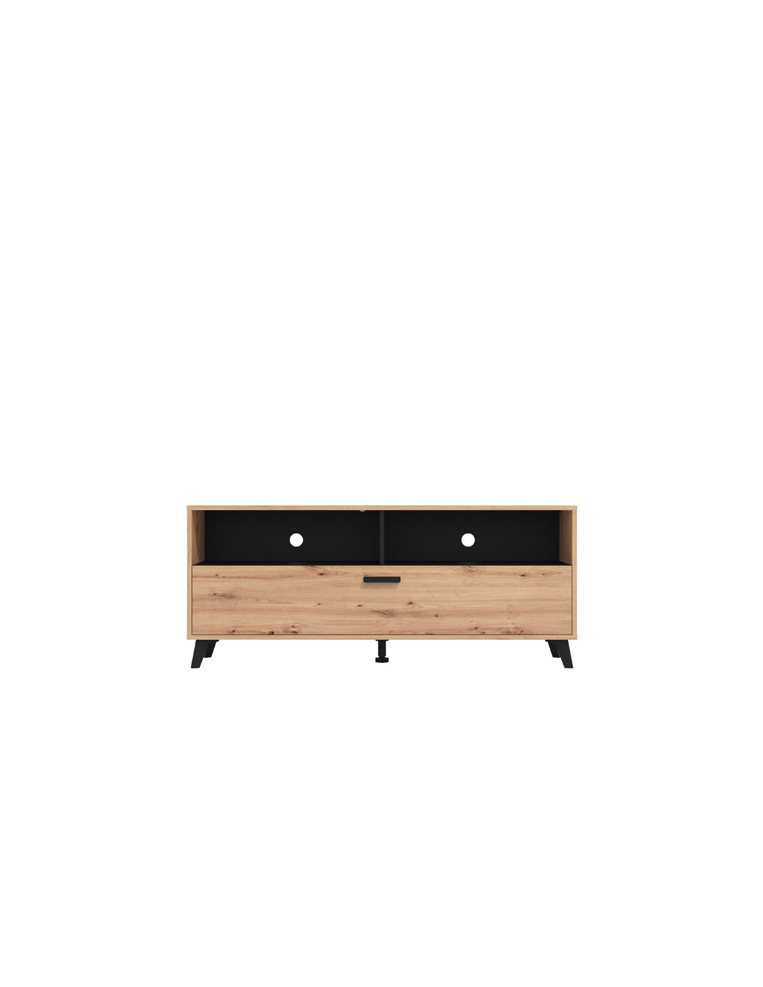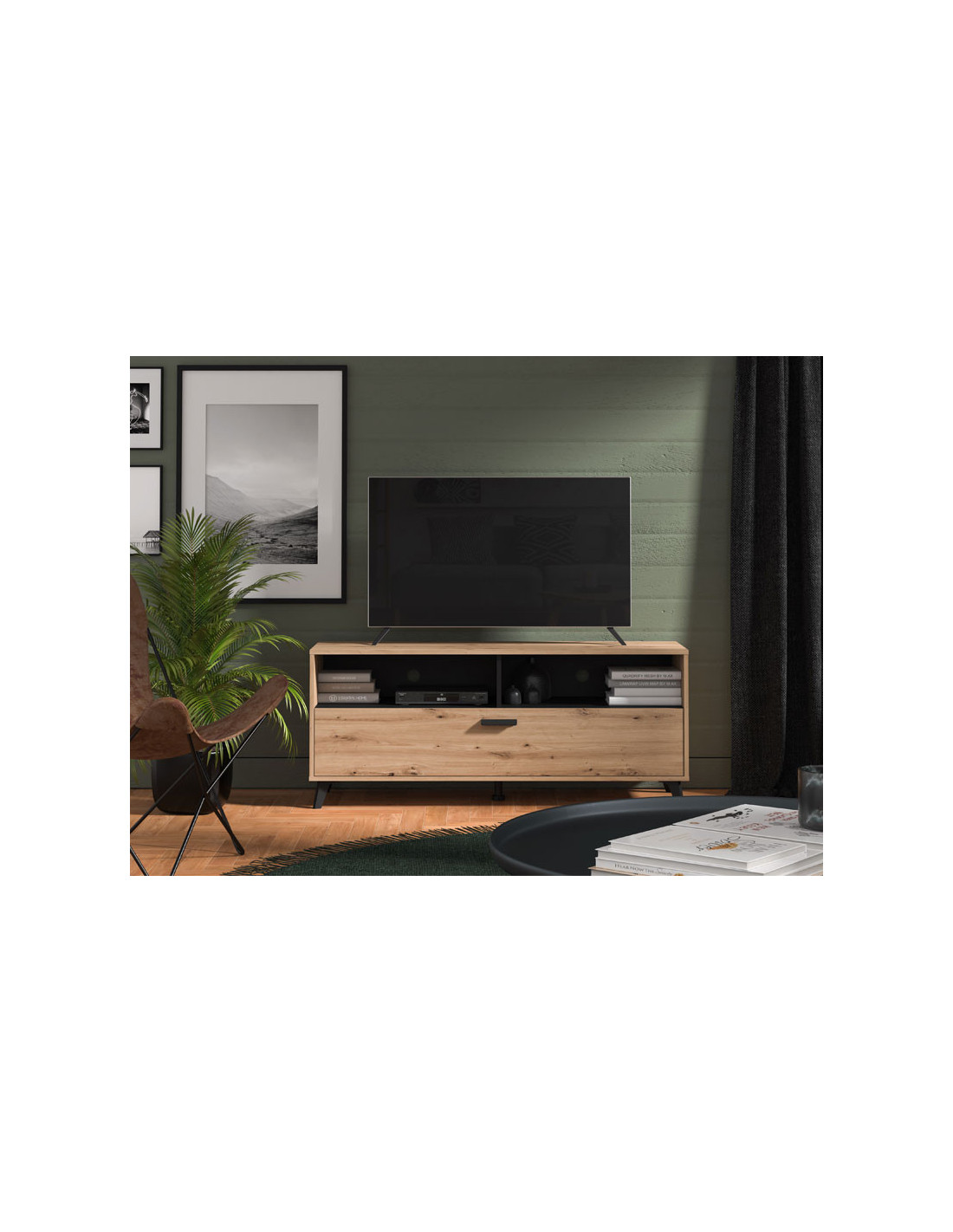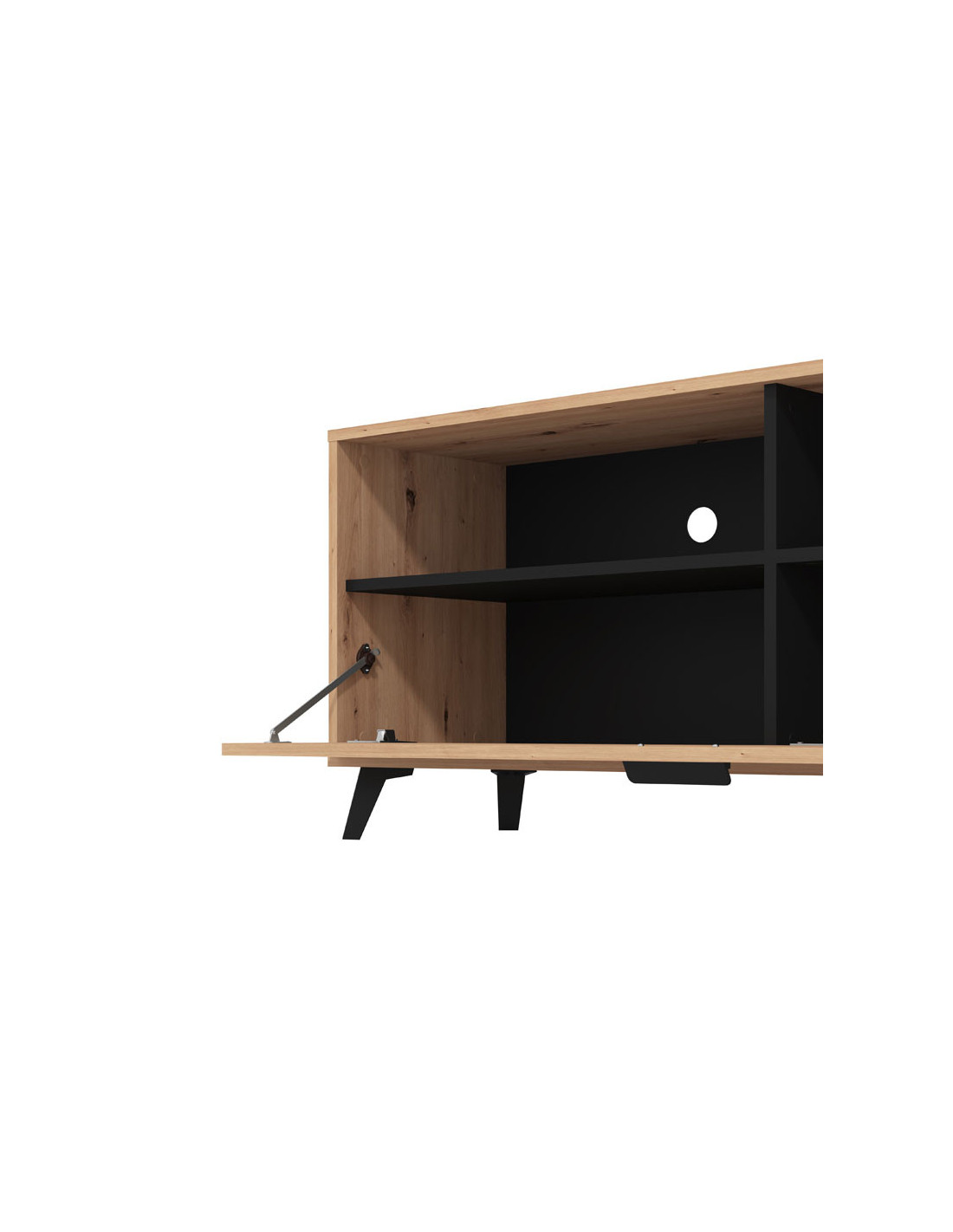 TV polica UMBRIA TV 140, u kombinaciji dekora hrasta umjetničkog stila i crnog drva, dio je iste kolekcije koja će doprinijeti opremanju vašeg doma prema najnovijim standardima interijera. TV polica UMBRIA TV 140 ima zatvoreni i otvoreni segment s pregradama.