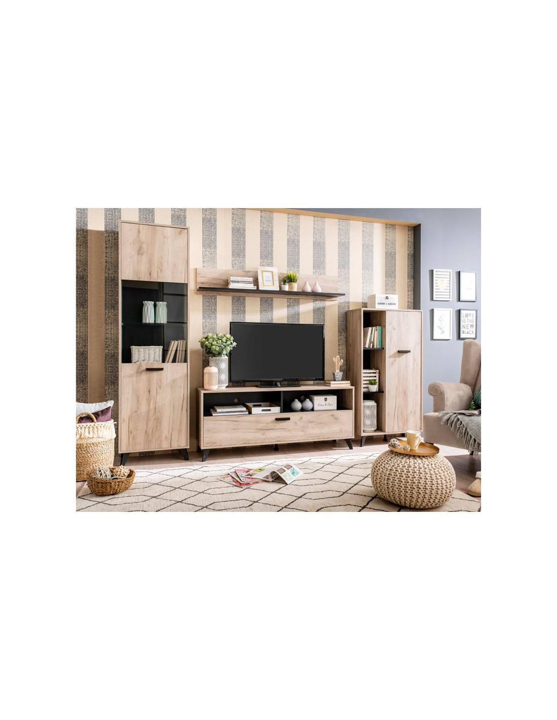 TV polica UMBRIA TV 140, u kombinaciji dekora sivog hrasta i crnog drva, dio je iste kolekcije koja će doprinijeti opremanju vašeg doma prema najnovijim standardima uređenja interijera. TV polica UMBRIA TV 140 ima zatvoreni i otvoreni segment s pregradama.