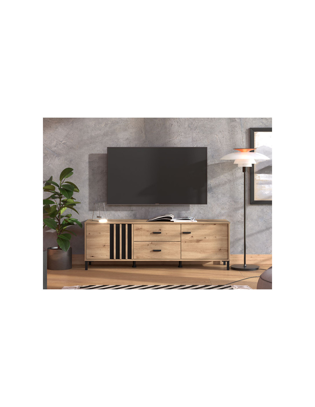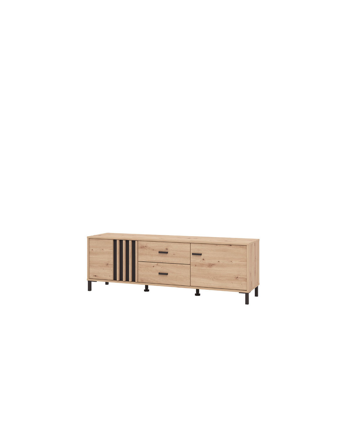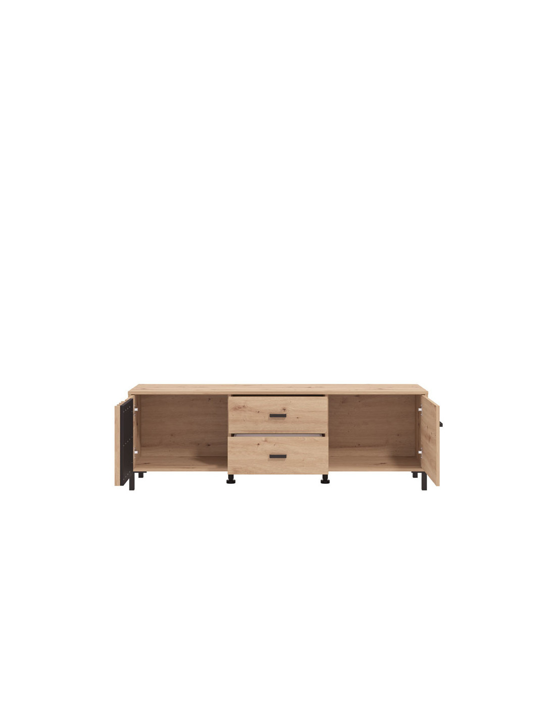 TV polica LAVAL TV 157 3K2F2V, u kombinaciji artisan hrasta, artisan hrast folije, kao i crnog dekora, dio je iste kolekcije koja će doprinijeti opremanju vašeg doma prema najnovijim standardima interijera. TV polica LAVAL TV 157 3K2F2V ima dva zatvorena segmenta s pregradama i dvije ladice.