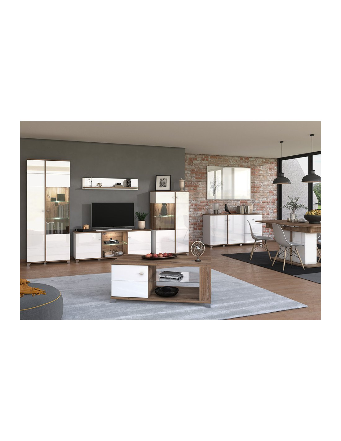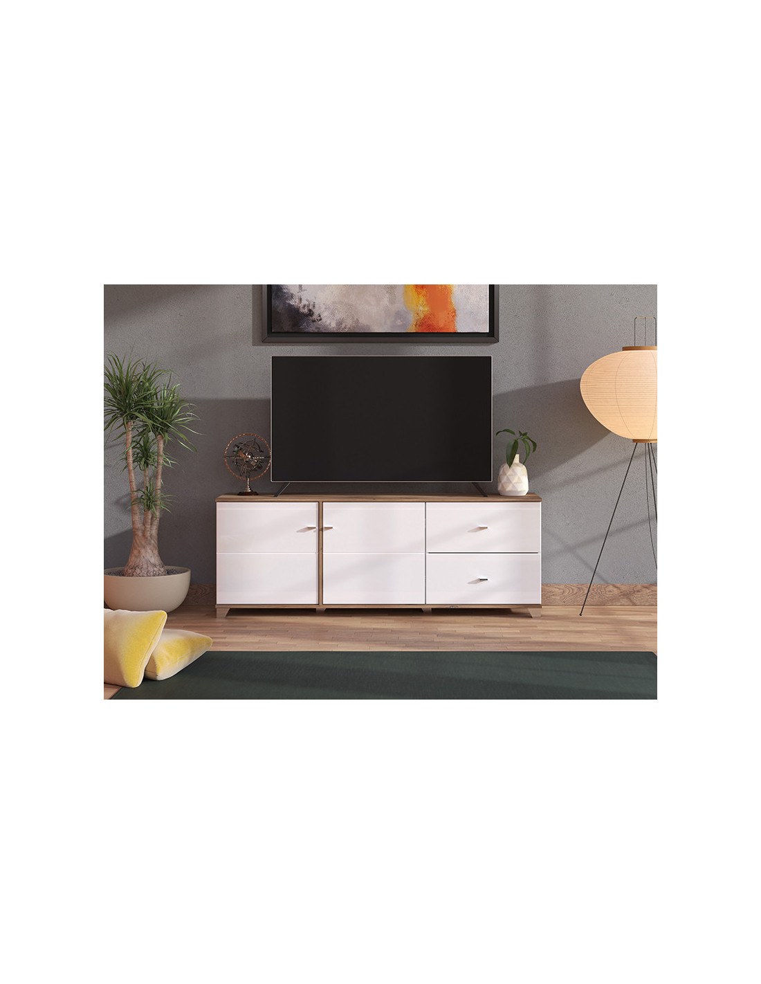 TV polica BURGUNDY TV 160 3K2F karakterizira se kombinacijom toplog dekora hrasta flagstaff i bijele lakirane folije. Predstavlja novu razinu estetske smjelosti koja karakterizira najmodernije domove, dok metalne ručke unose dodatnu ozbiljnost u dizajn ovog sustava elemenata. Dva zatvorena segmenta, kao i dvije praktične ladice, učinkovito doprinose funkcionalnoj organizaciji dnevnog boravka. Zatvoreni pregradni dijelovi karakteriziraju se sustavom zatvaranja "soft close".