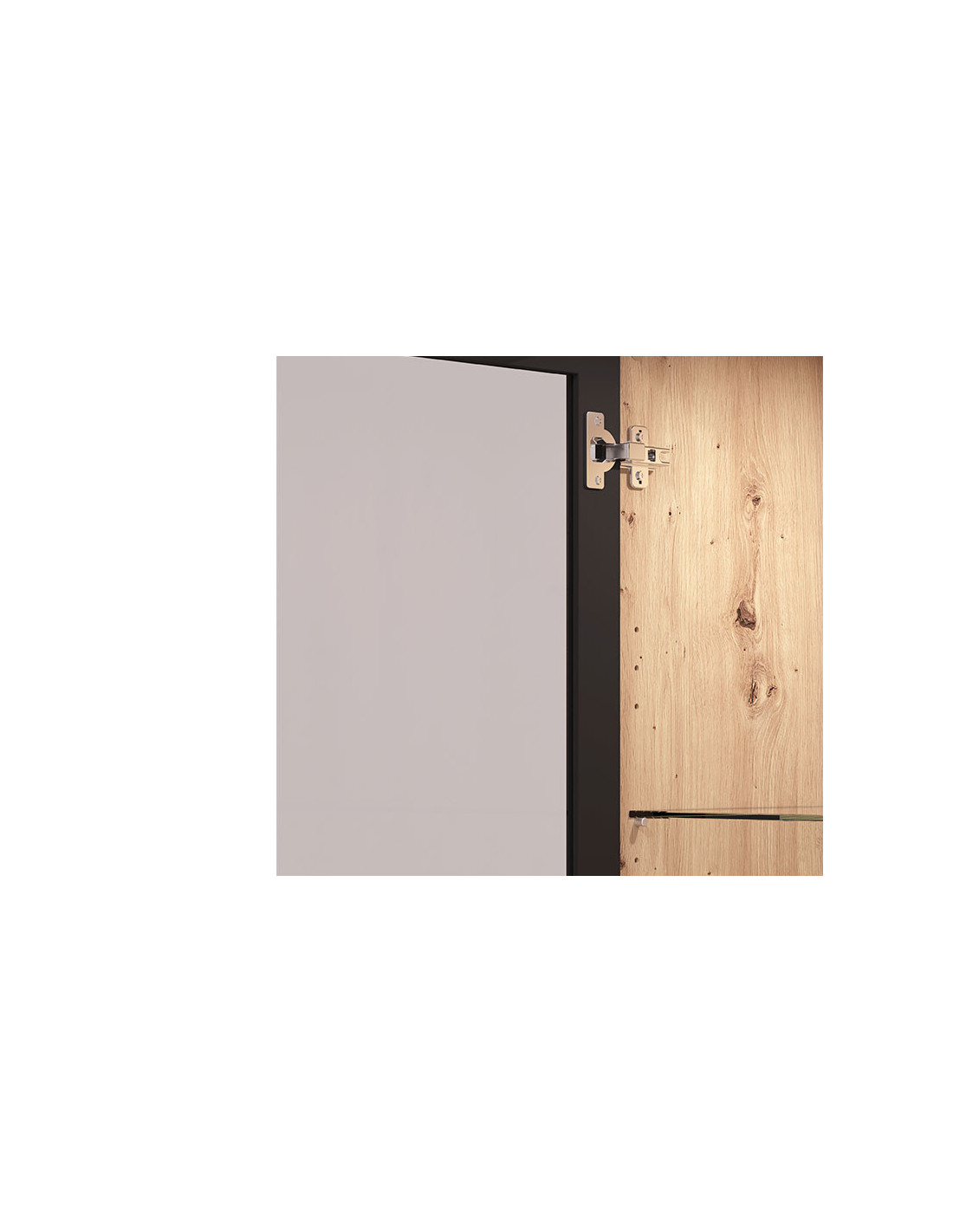 Vitrina Mayenne 1K VS, u kombinaciji dekora artisan hrast i crne mat folije, dio je istoimene kolekcije koja će pomoći da Vaš dom bude opremljen po najnovijim standardima interijera. Sastoji se od zatvorenog i polustakljenog segmenta.