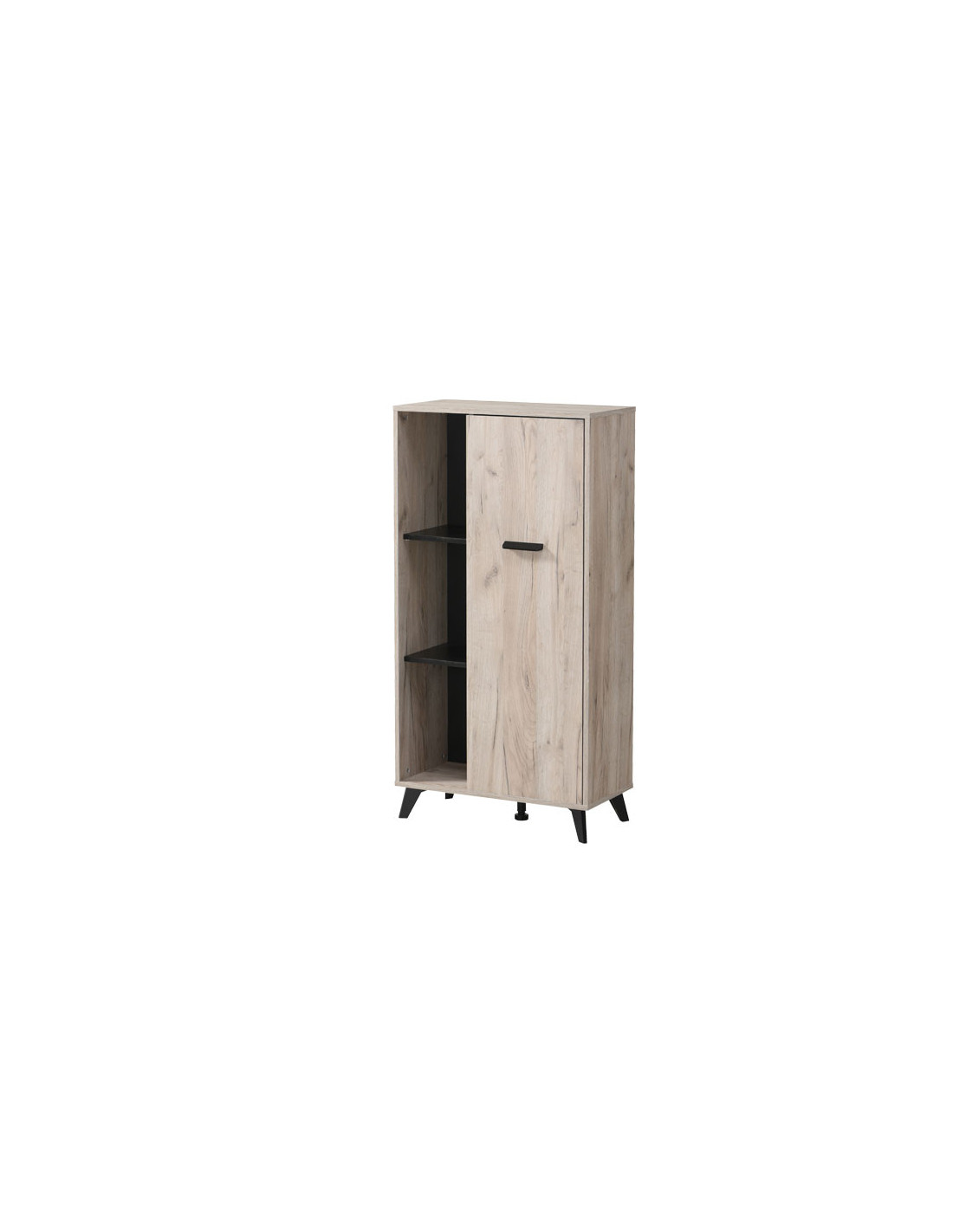 Vitrina UMBRIA POP, u kombinaciji dekora sivog hrasta i crnog drva, dio je istoimene kolekcije koja će doprinijeti opremanju vašeg doma prema najnovijim standardima interijera. Sastoji se od dva segmenta s unutarnjim pregradama, od kojih je jedan zatvoren, a drugi otvoren.