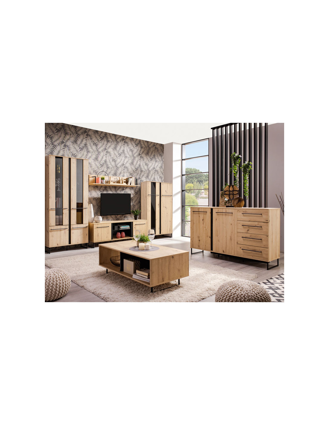 Vitrina SARDINIA 2K VS1 je kombinacija topline prirodnog i rustikalnog hrasta s primjenom suptilnih crnih dekorativnih elemenata, kao karakteristika industrijskog stila u uređenju interijera. Ova dvokrilna funkcionalna vitrina sastoji se od sustava polica raspoređenih u zatvorenom dijelu s jedne strane i poluostakljenom dijelu s druge strane. Dio je istoimene kolekcije SARDINIA, s kojom tvori unutarnju cjelinu, a koja u vaš dom unosi odraz autentičnog i smjelog načina života. Postoji mogućnost ugradnje dodatne rasvjete.