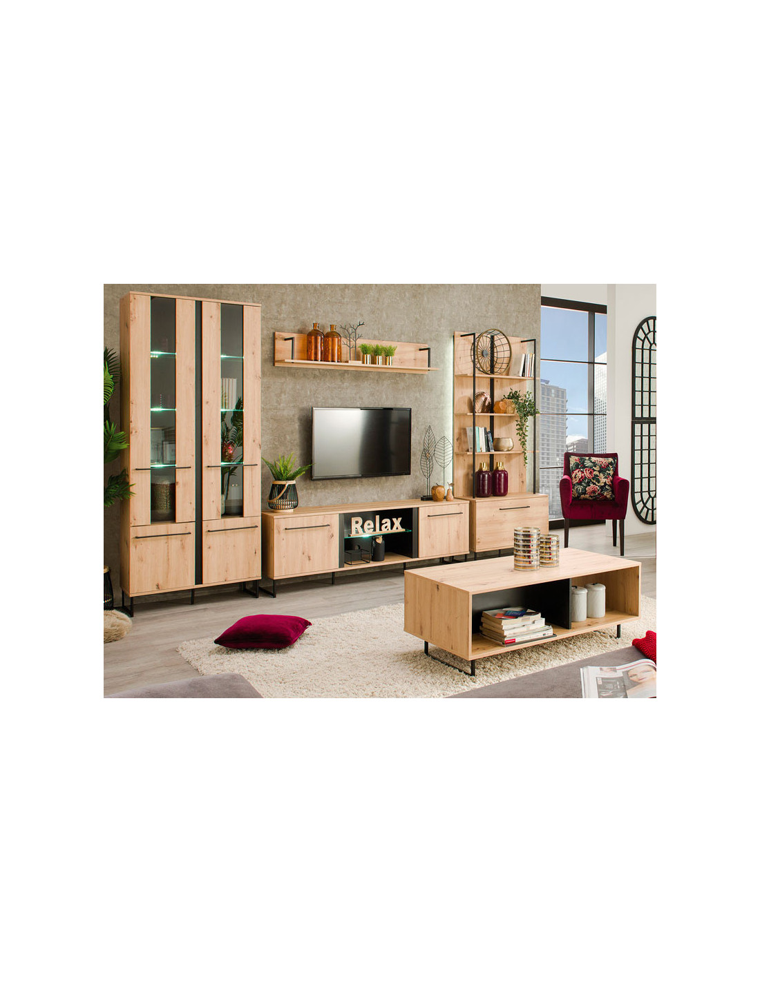 Vitrina SARDINIA POP, u kombinaciji hrasta umjetničkog i crnog dekora, dio je istoimene kolekcije s kojom tvori unutrašnjost cjeline, a koja odražava autentičan i odvažan stil života u vašem domu. Sastoji se od zatvorene komode s dva pretinca i priloženog dijela koji odgovara dimenzijama komode. Postoji mogućnost ugradnje dodatne rasvjete.