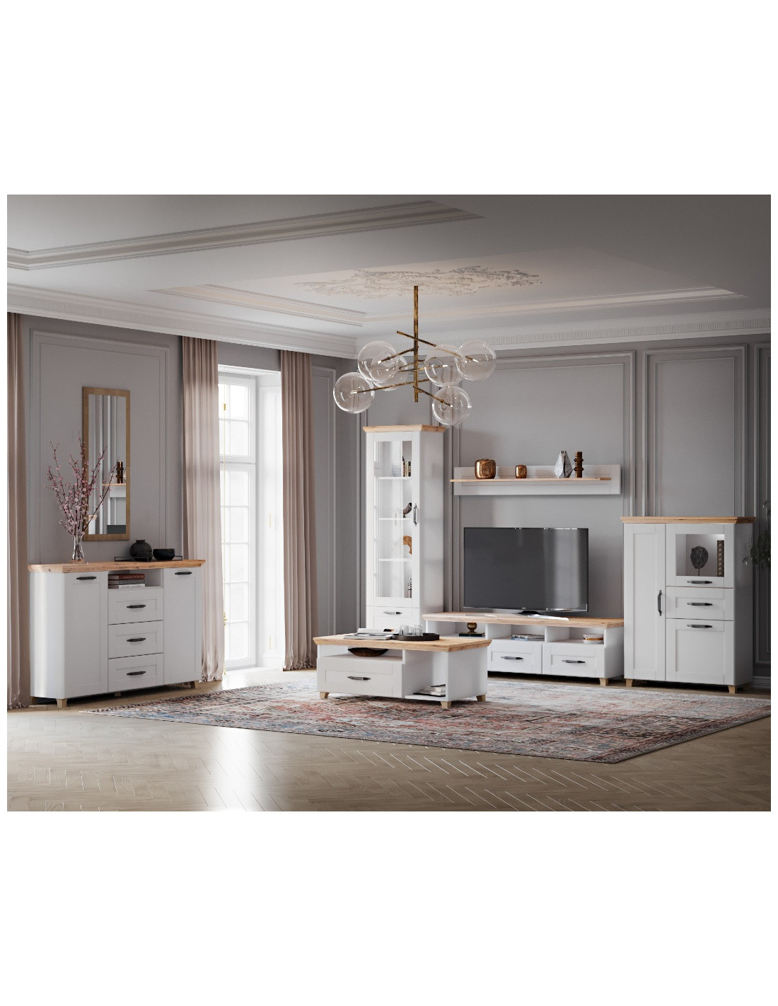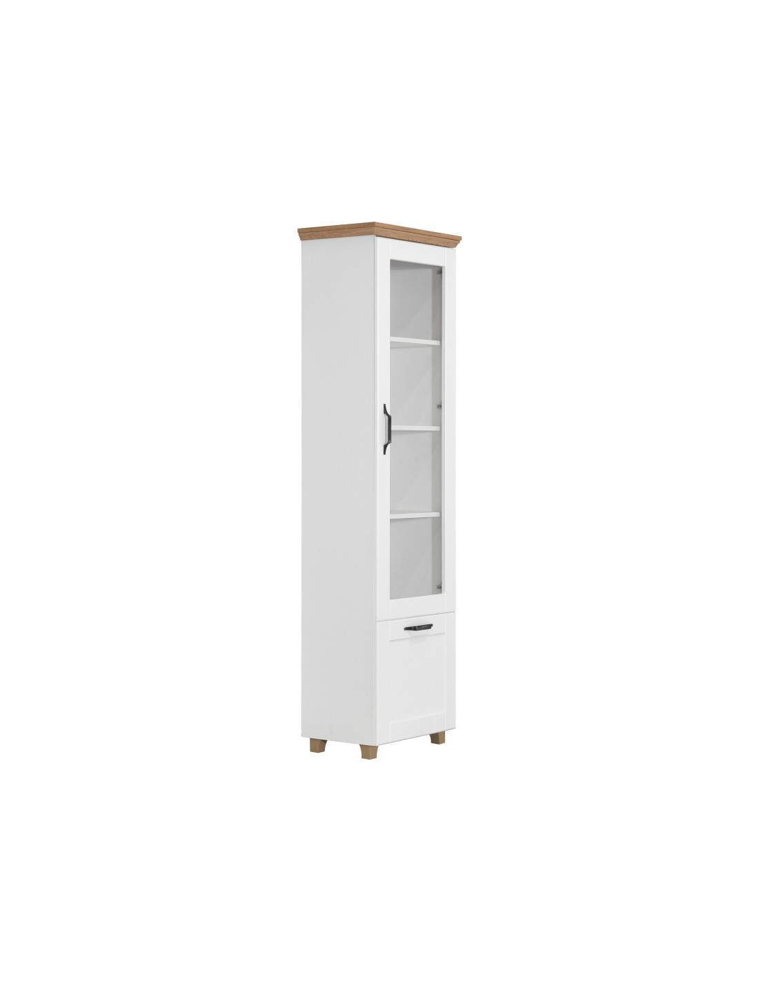 Staklena vitrina Contempo je praktičan, elegantan i višenamjenski komad namještaja koji se lako uklapa u svaki prostor. Njena funkcionalnost i moderan dizajn pružaju dovoljno prostora za pohranu knjiga, ukrasa i drugih ukrasnih predmeta. Staklena ploča na vratima doprinosi estetici i otvara prostor. Osim toga, vitrina zauzima vrlo malo prostora, što doprinosi maksimalnom iskorištenju okoliša.