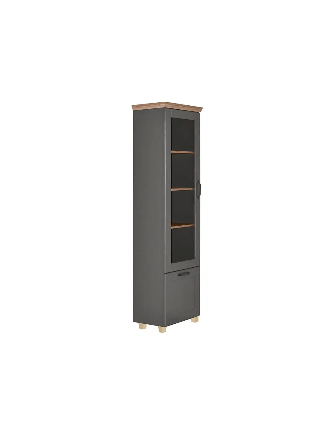 Staklena vitrina Contempo je praktičan, elegantan i višenamjenski komad namještaja koji se lako uklapa u svaki prostor. Njena funkcionalnost i moderan dizajn pružaju dovoljno prostora za pohranu knjiga, ukrasa i drugih ukrasnih predmeta. Staklena ploča na vratima doprinosi estetici i otvara prostor. Osim toga, vitrina zauzima vrlo malo prostora, što doprinosi maksimalnom iskorištenju okoliša.