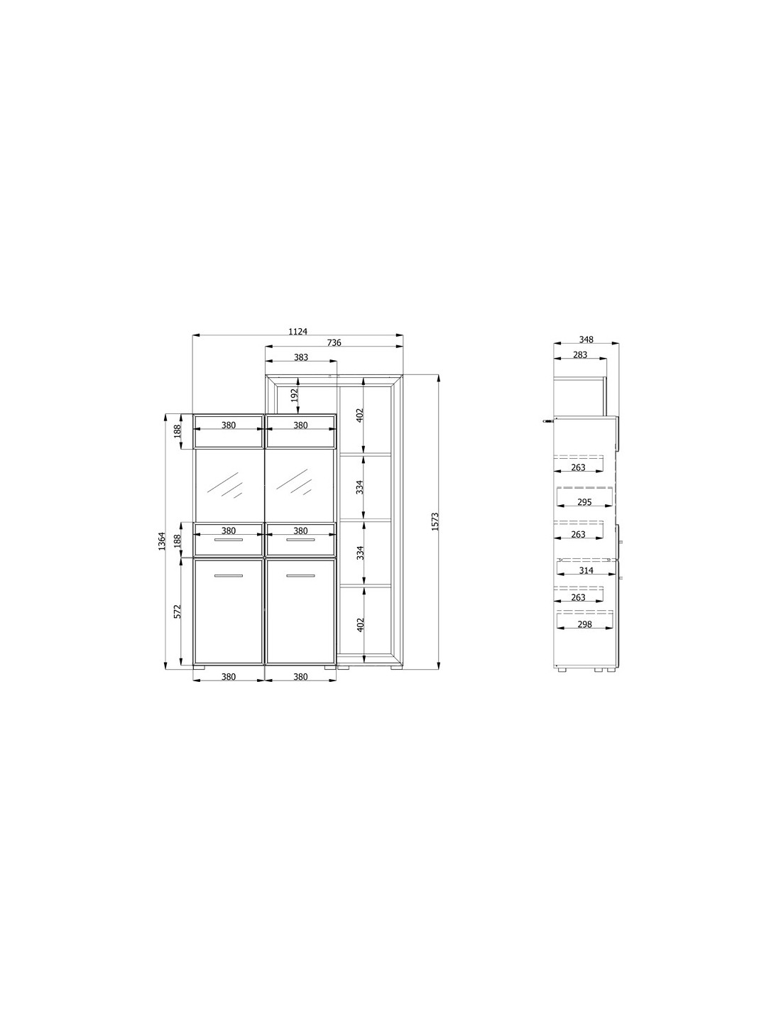 Š 112,5 cm / D 35 cm / V 157,5 cm