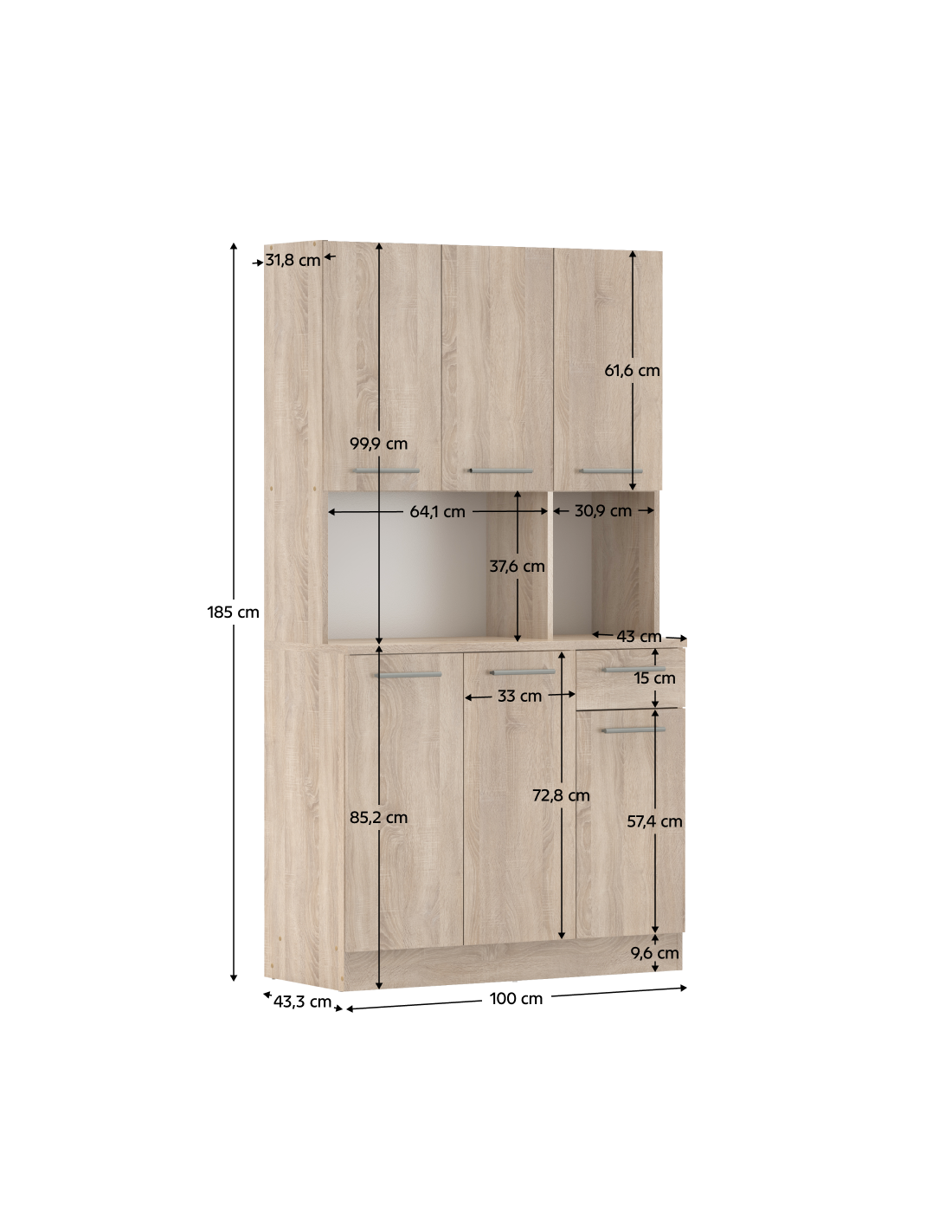 Š 100cm / D 43,5cm / V 185cm