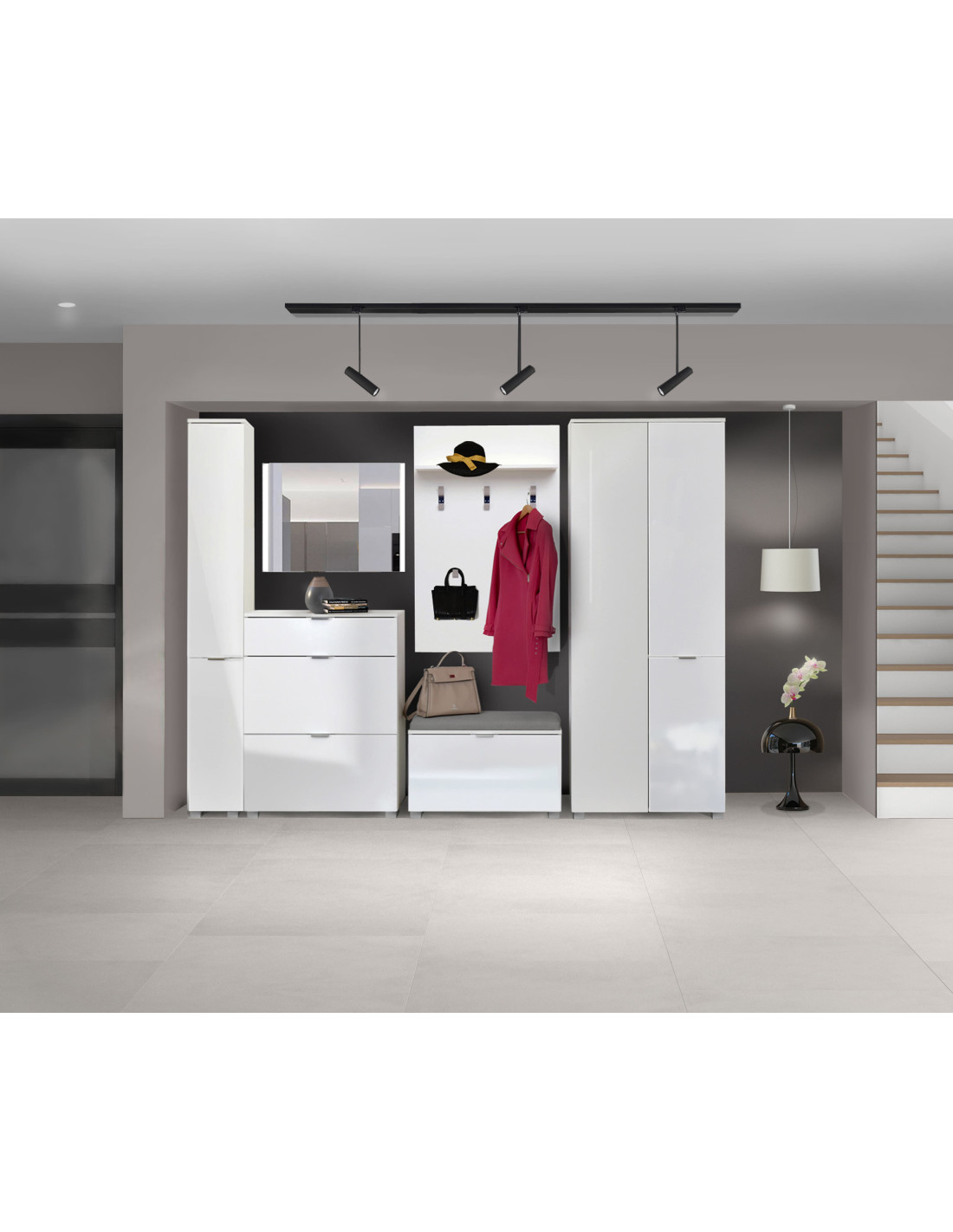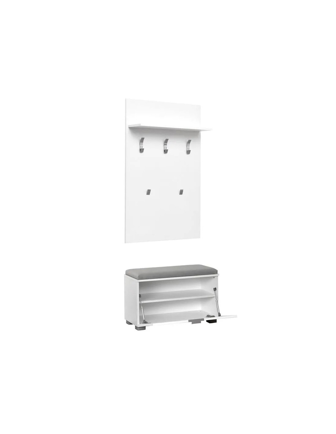 Element predsoblja Elegance predstavlja idealno rješenje za vaš ulazni hodnik. Gornji dio namijenjen je odlaganju odjeće, a donji dio je komoda s prostranim prostorom podijeljenim policom. Element ima tapecirani dio za sjedenje prilikom obuvanja cipela. Ovaj element može se koristiti i u uredu.