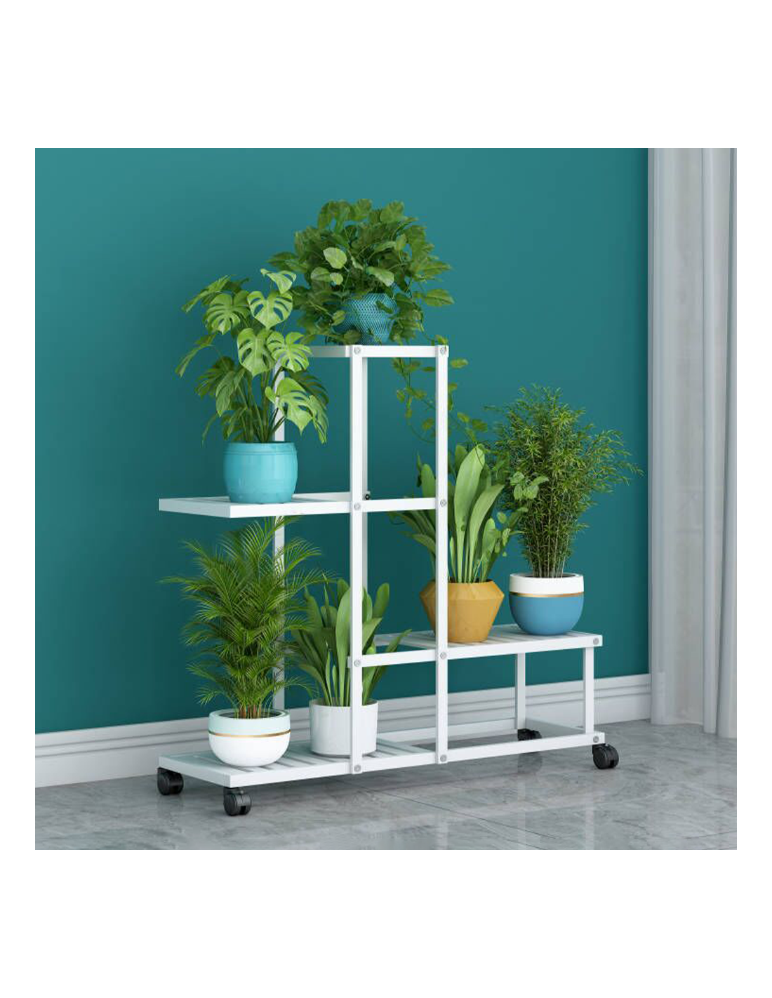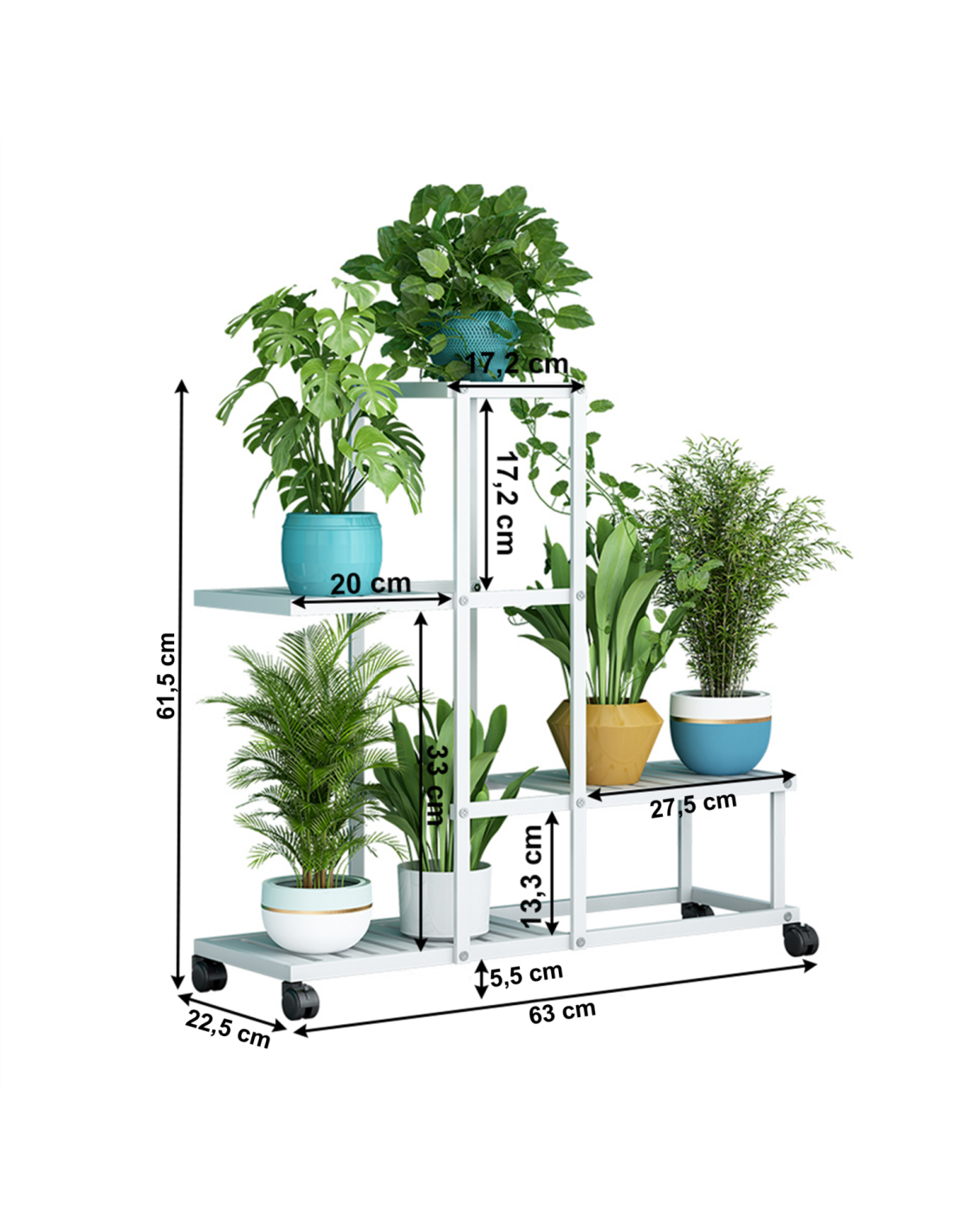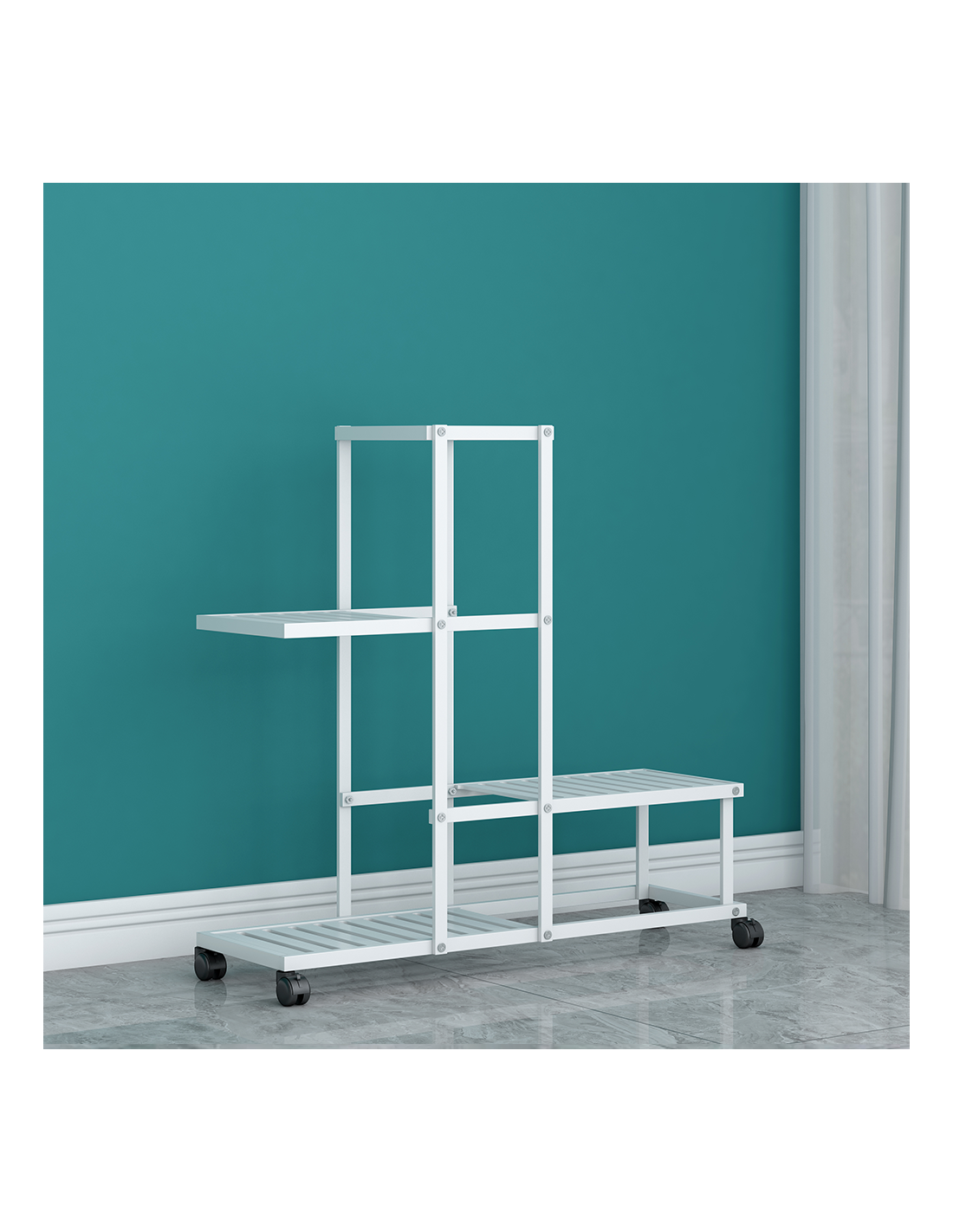 Uživajte u čarobnoj atmosferi cvijeća. Stalak je izrađen od metala u bijeloj boji. Izgleda vrlo elegantno i moderno. Iako mu je primarna funkcija pohranjivanje cvjetnih posuda s biljkama, s lakoćom se može nositi i s drugim zadacima. Razni kućni ukrasi će se lijepo istaknuti na njemu. Estetski ugodan dizajn nije jedina prednost ove police. Svakako ćete cijeniti praktične kotačiće, zahvaljujući kojima je možete jednostavno pomicati. Kotačići su izrađeni od plastike, a 2 od njih su opremljena kočnicama za osiguranje police. Organizirajte svoj dom s MAVERO stalkom za cvijeće.